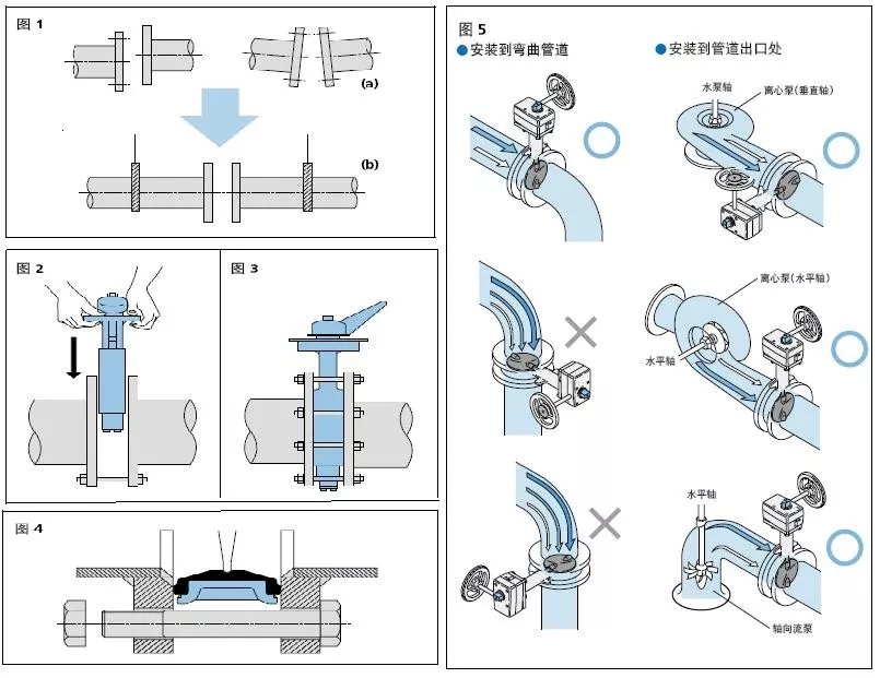 14.不要在彎頭和漸縮管的下游一側(cè)安裝閥門,或在流速變化時校準(zhǔn)閥門。發(fā)生這種情況,建議在大約10倍于閥門公稱直徑的距離之外安裝閥門。